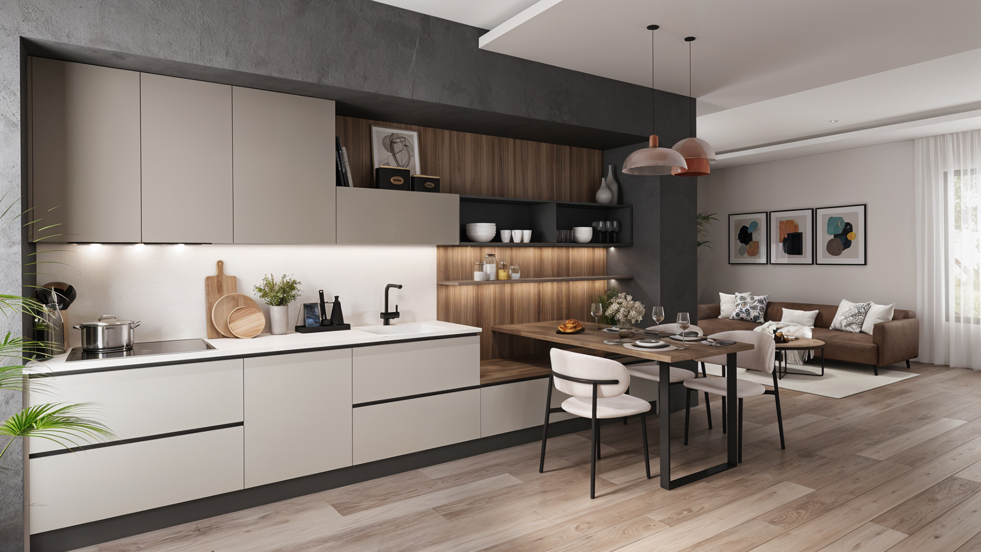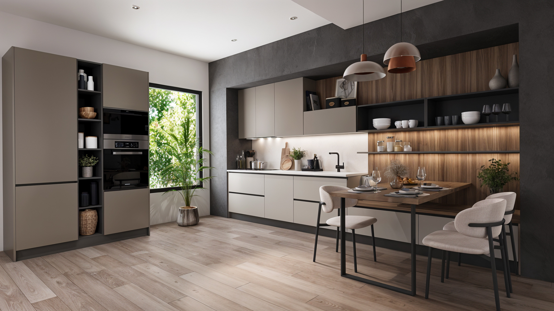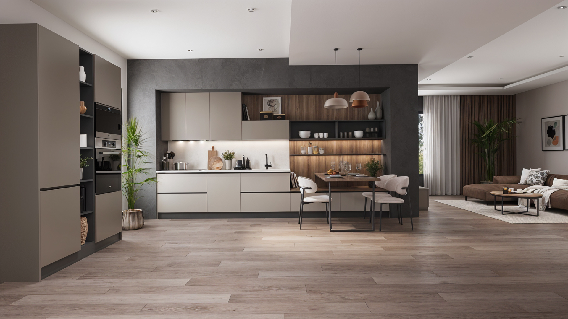 Minimal çizgileri ve dengeli renk kullanımı sayesinde modern mutfak dekorasyonuna uyum sağlar. Skyline mutfak modeli, açık raf sistemleri ve akıllı depolama çözümleri ile mutfakta maksimum kullanım alanı sunar. Günlük kullanımda konfor sağlayan tasarım detayları ile hem estetik hem de işlevsel bir mutfak deneyimi oluşturur.
